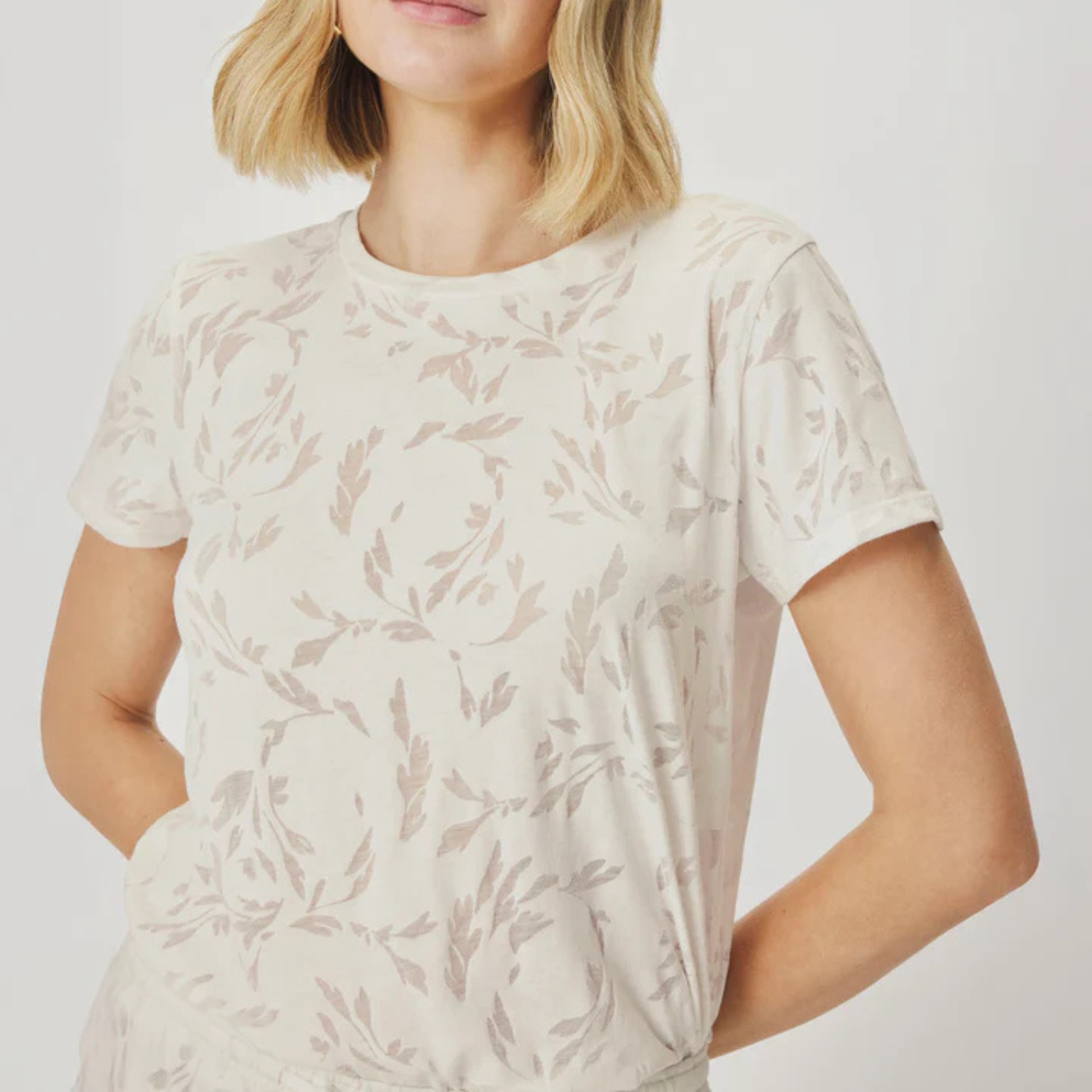 Why we picked it: The Air Burnout Tee is casual elevated to an art form. That gorgeous shell windswept color is soft and sophisticated, while the burnout leaf print adds subtle texture and visual interest that makes this way more special than your average tee. The lightweight, airy fabric feels amazing against your skin — perfect for warm days when you want to look polished but stay cool. The burnout technique creates a beautiful, almost ethereal quality that catches the light just right.
