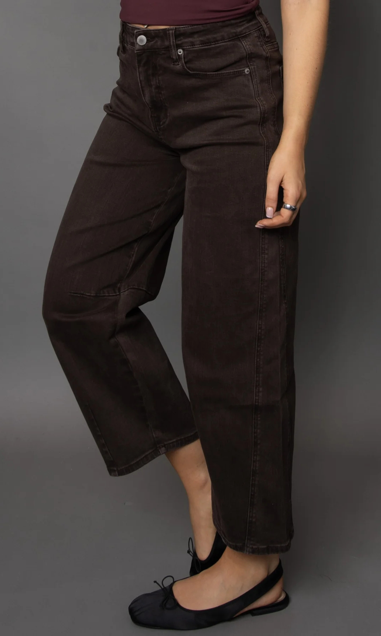 Why we picked it: You know it, you love it - the Barni Barrel Pant is back! Designed with a sleek, high-waisted silhouette and a softly structured barrel leg, this pant flatters every shape while offering all-day comfort. The wide leg that tapers at the ankle creates the most flattering, elongating shape. The seam details add visual interest and that cool, slightly deconstructed feel, while the relaxed fit means you're actually comfortable all day long. In rich brown or classic black, these are the jeans you'll reach for on repeat.
