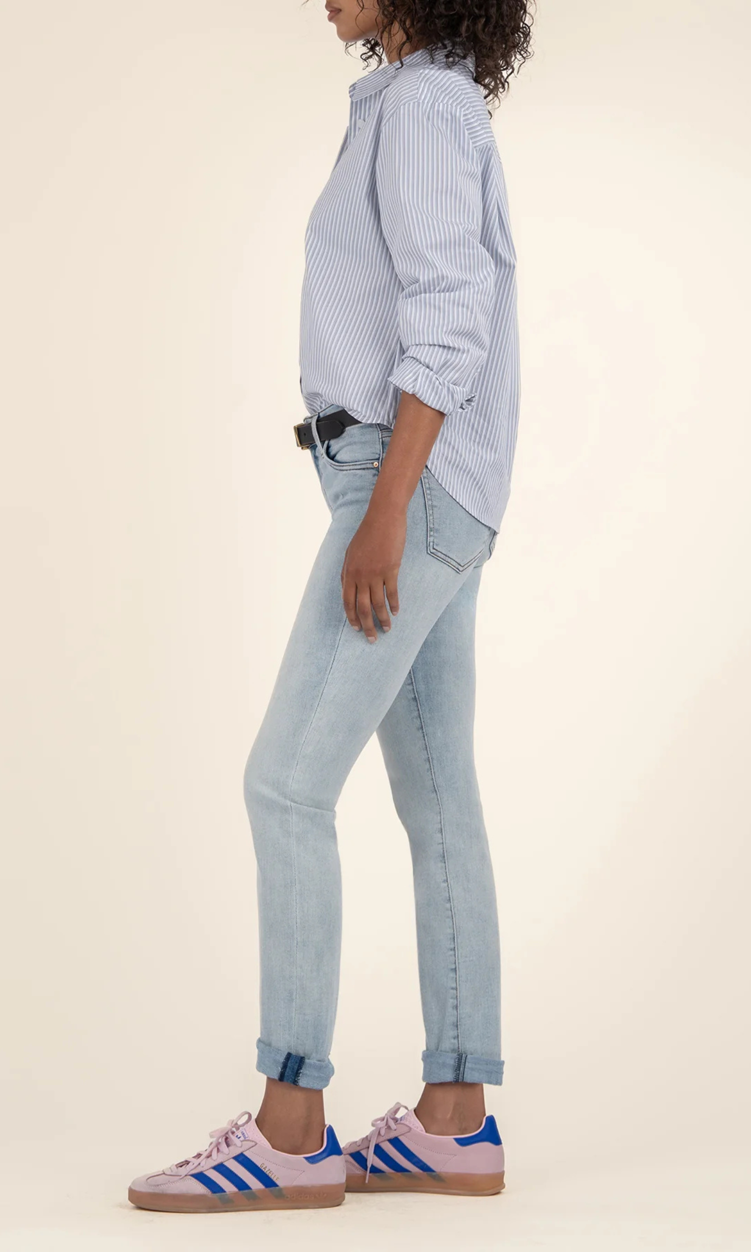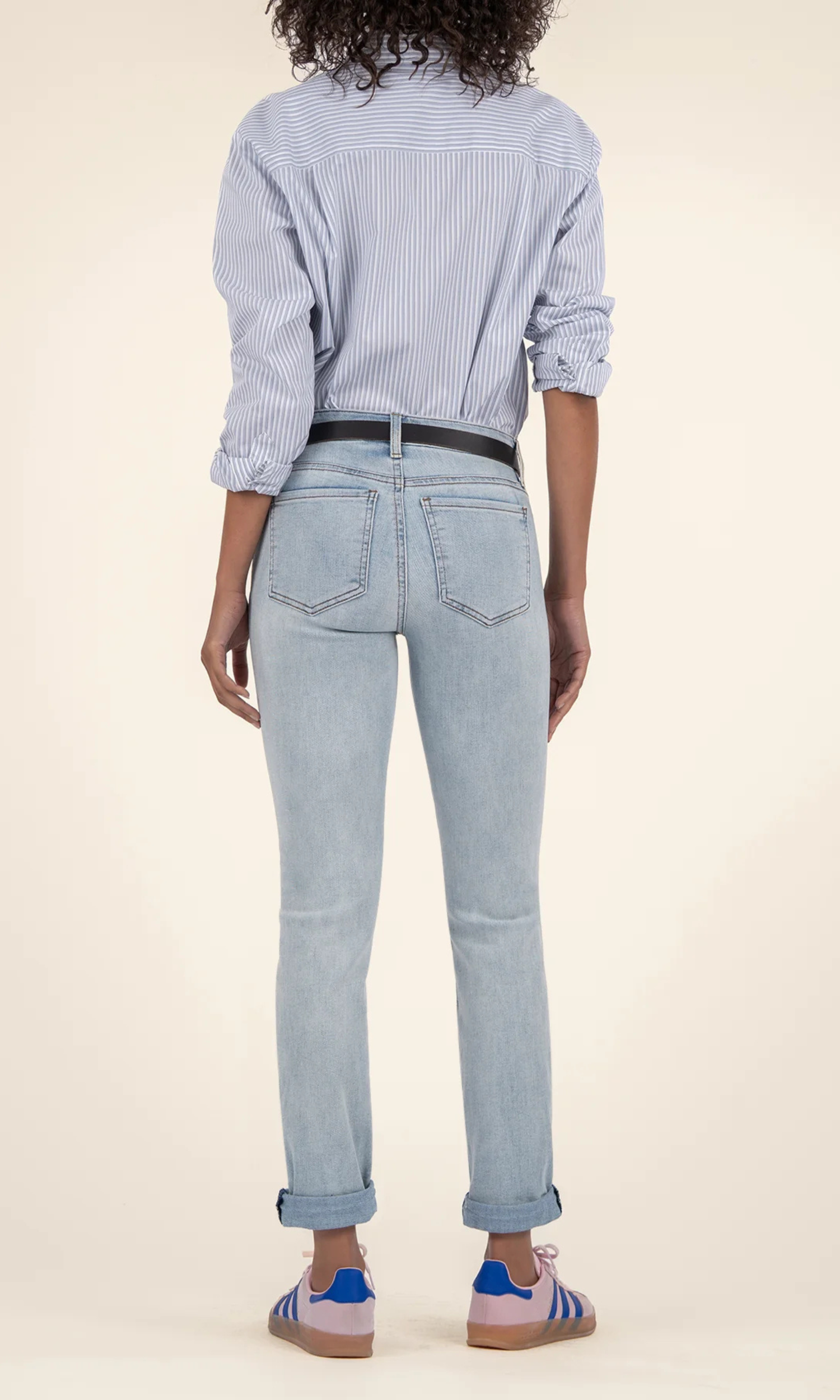Why we picked it: The Catherine was the first ever KUT style that we brought into the shop. They are a great everyday boyfriend jean, but without the extra bulk - they take into consideration we still have curves!. This pair is all about the summer friendly light wash. Think cottage weekends on the dock drinking that glass of wine! The cuff at the bottom is not fastened so you can wear straight with a finished hem (not raw hem). This makes these pair versatile. No shortening required, just roll and wear!
