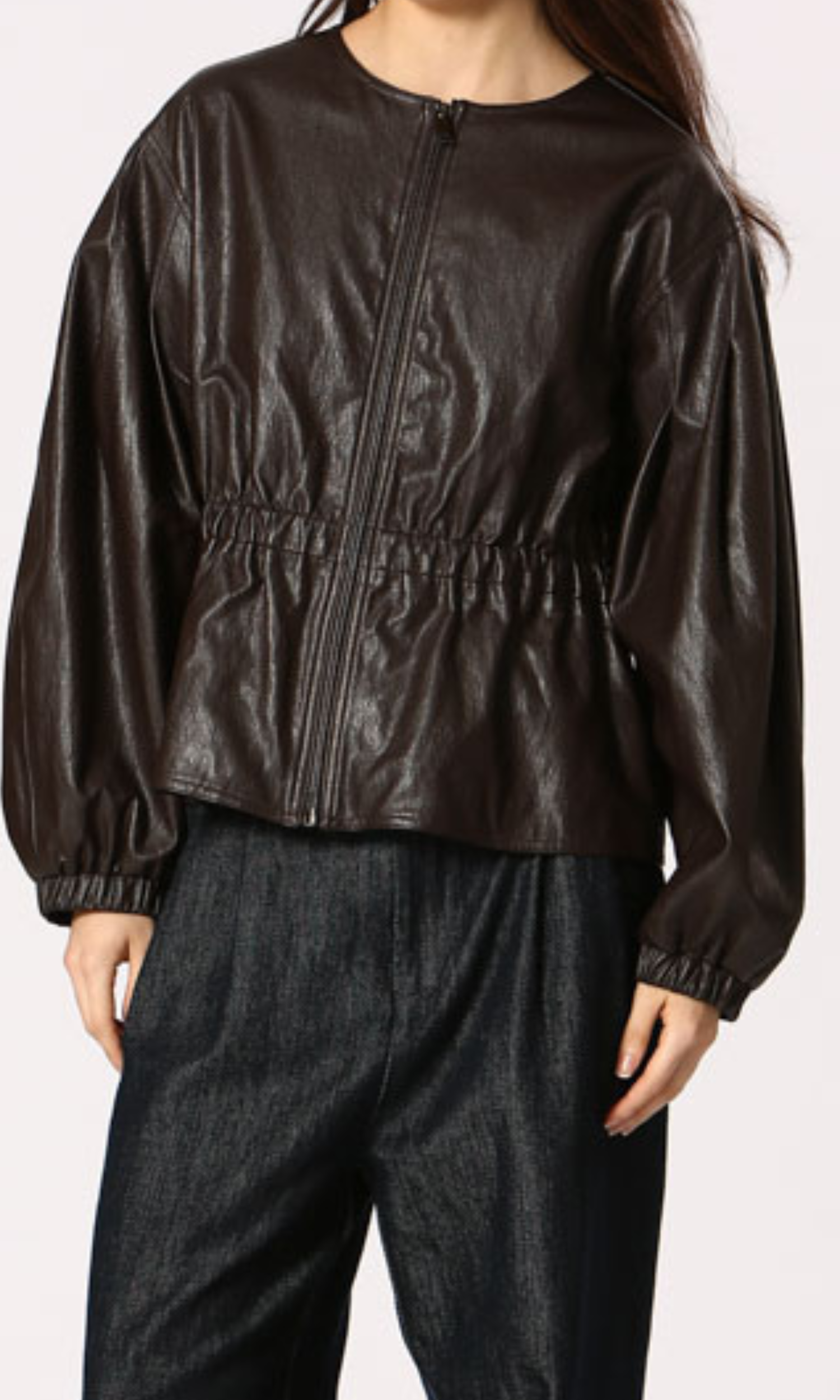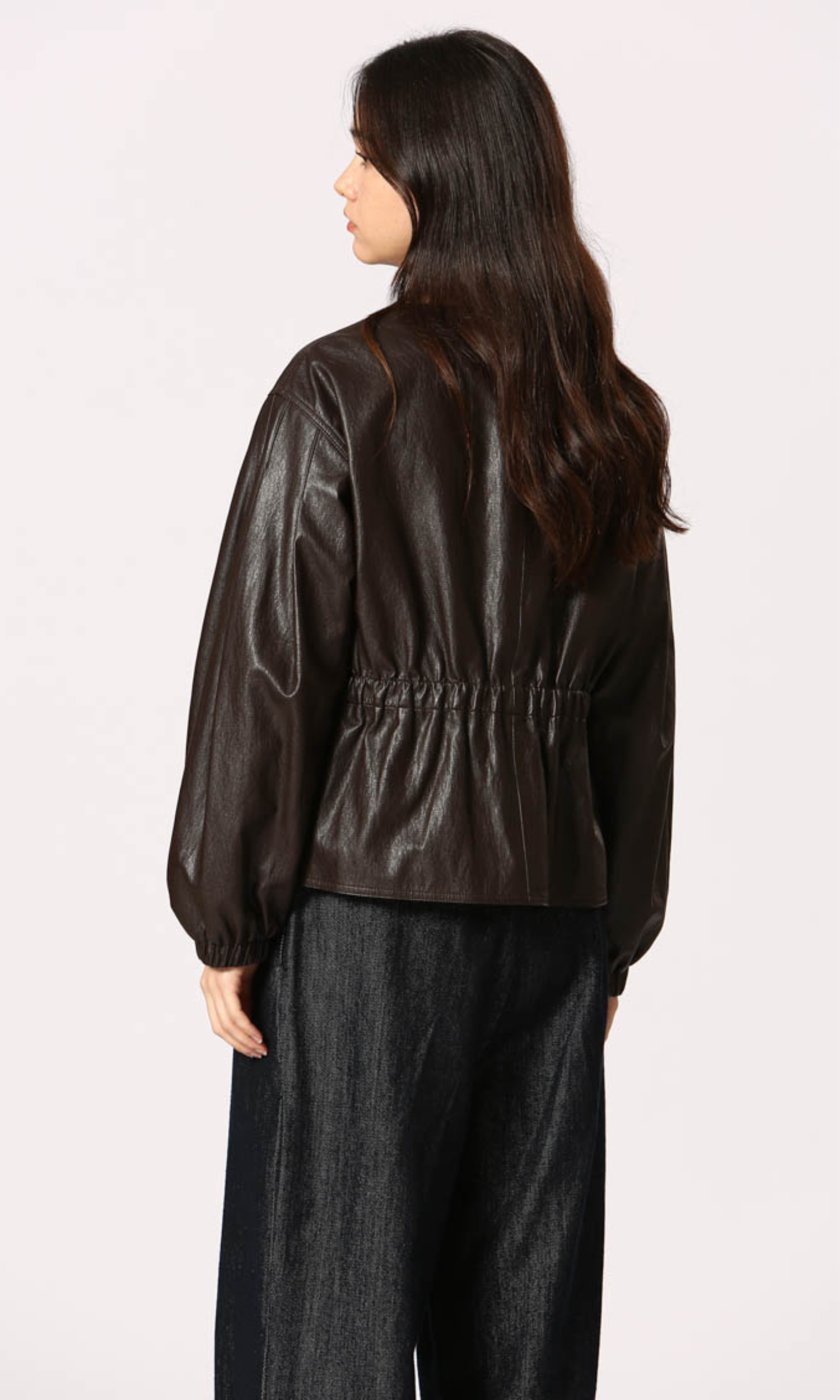 Cinched Vegan Leather Jacket