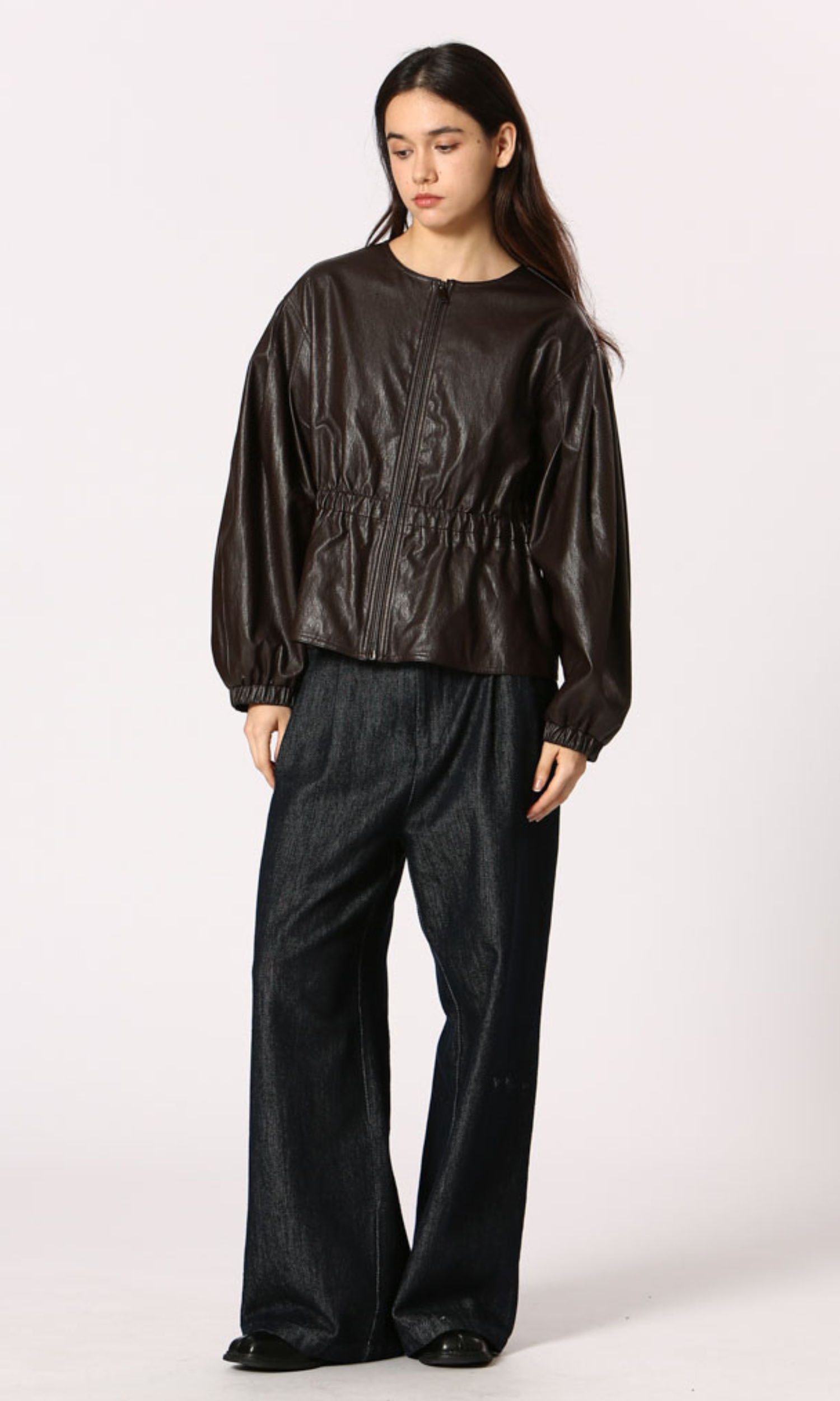 - Zip it up with wide-leg denim or tailored trousers for a waist-defining silhouette.