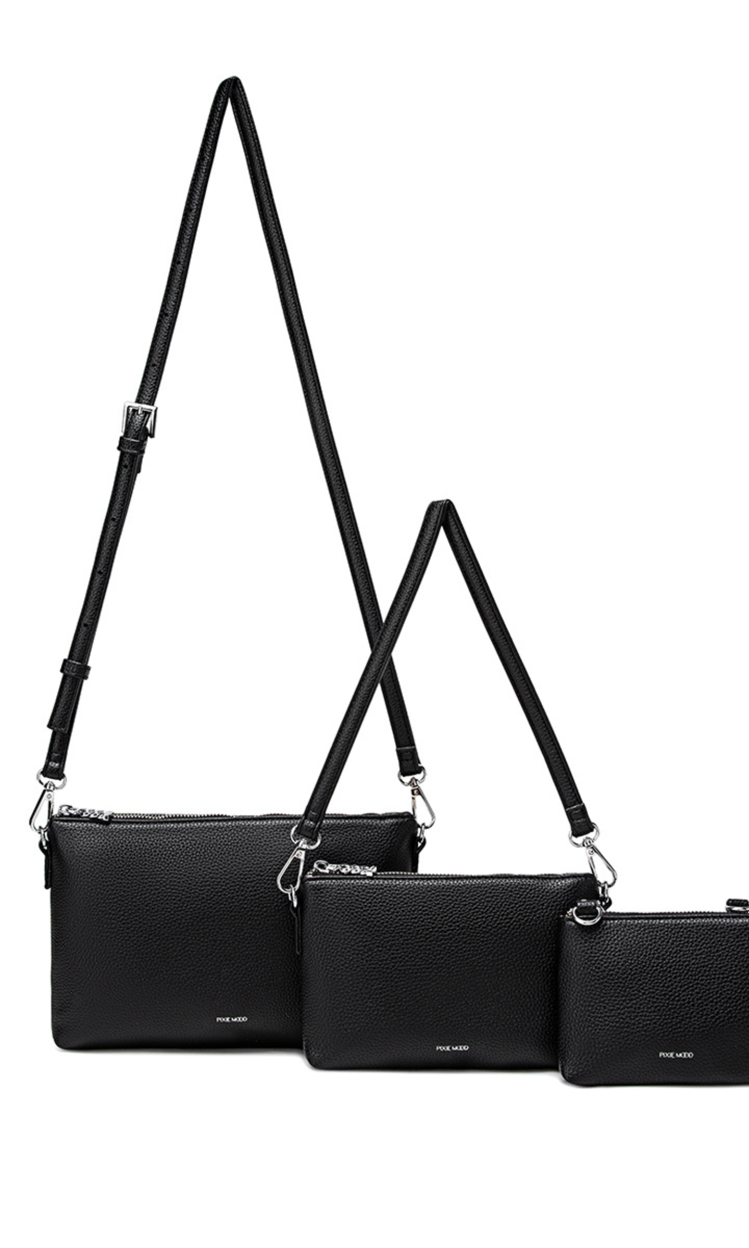 Experience true versatility with the Drea Pouches Set! With their varied sizes and dual-purpose design, these pouches can transition from storage pouches to stunning bags effortlessly. This set comes with two detachable straps - one short and one long adjustable strap - allowing for multiple styles and functions. Why limit yourself to one bag, when you can own three? Perfect for travel, work, or everyday use, the Drea Pouches Set is a must-have for the stylishly organized individual.