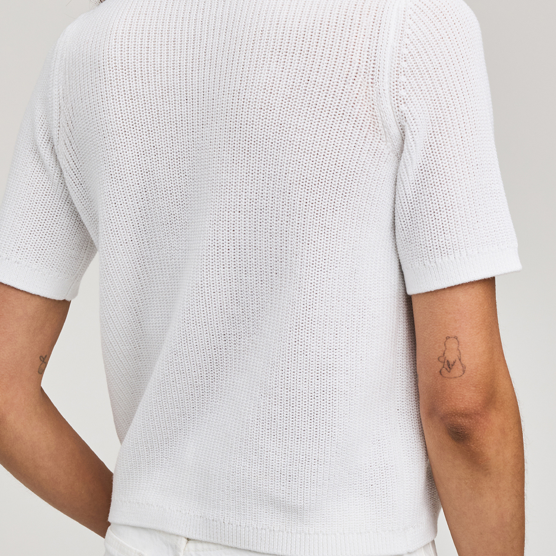 Say hello to Faye! The lightweight knit feels breathable and smooth against the skin, while the tailored short sleeve and crew neckline keep the look elevated. It’s minimal in the best way — a true wardrobe foundation that makes everything you pair it with look intentional.
