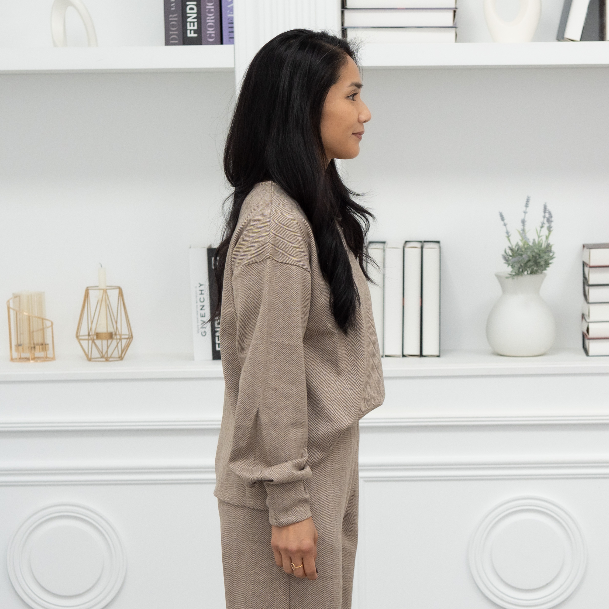 - Tuck into high-waisted trousers with pointed flats for work-appropriate look.