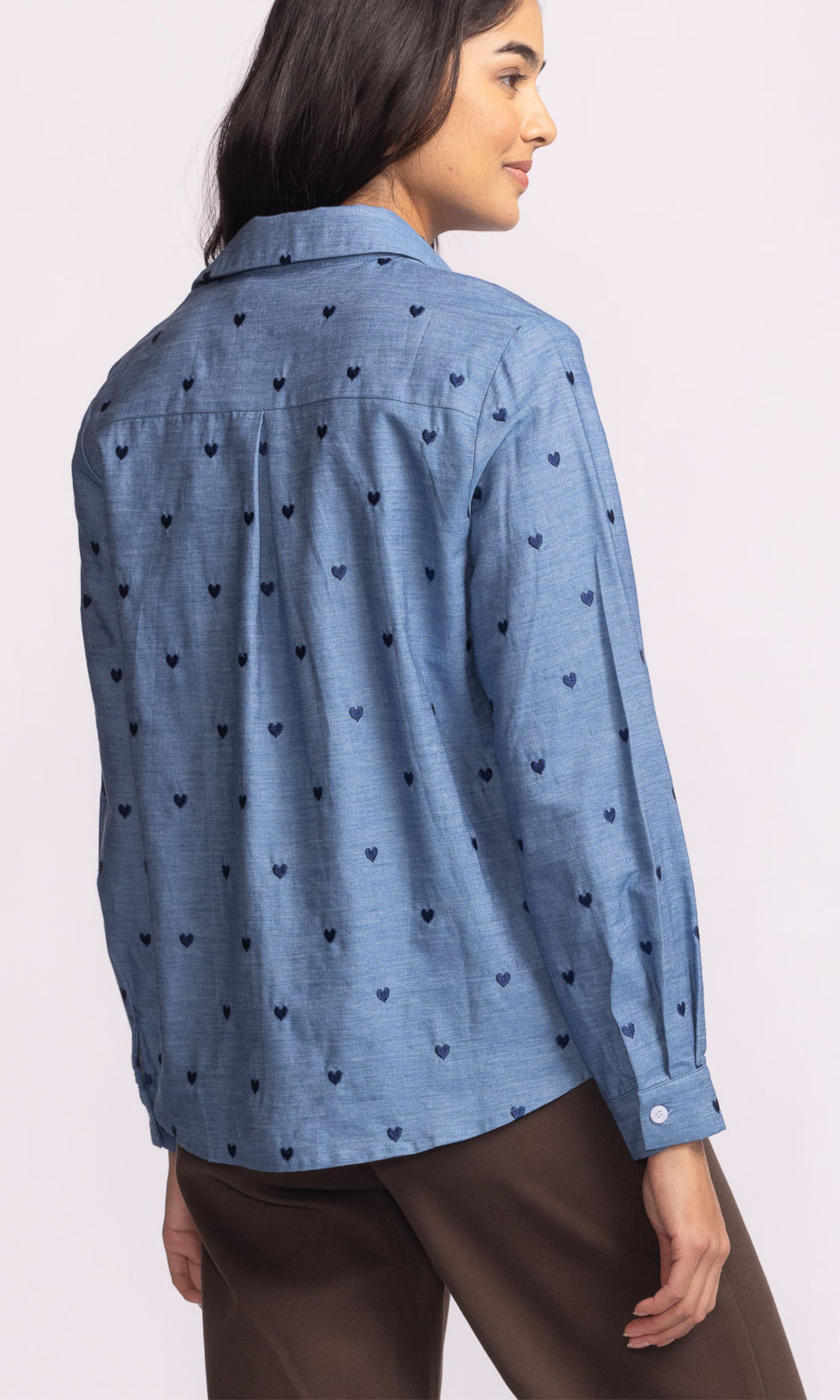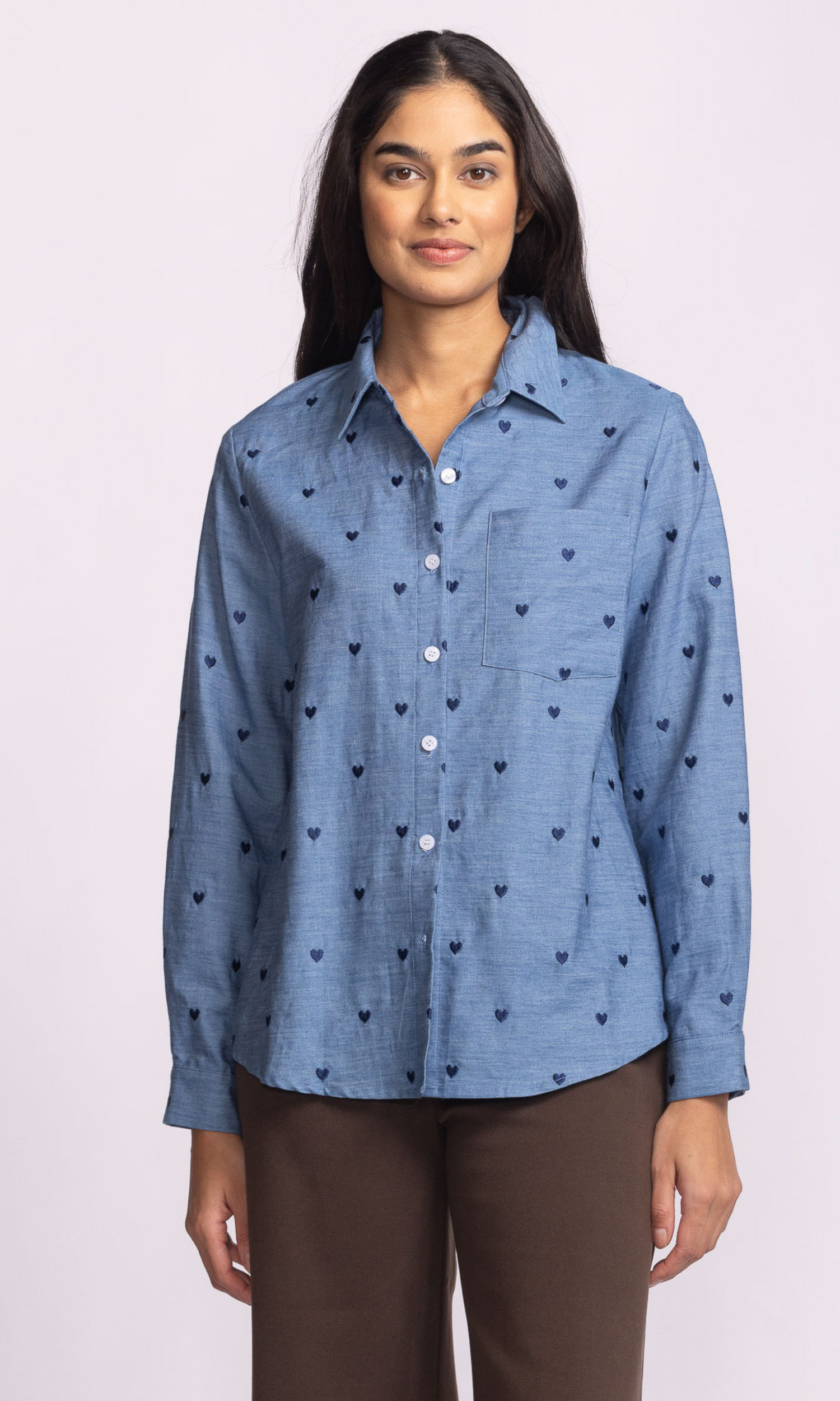 Why we picked it: The Azula Top is that sweet spot where casual meets charming. In a soft denim-blue tone with delicate embroidered hearts, it’s the button-down that works as hard as you do. The high-low hemline gives you the freedom to tuck it in for structure or leave it loose for laid-back vibes—either way, don’t forget to roll those sleeves for the perfect “effortless” finish.