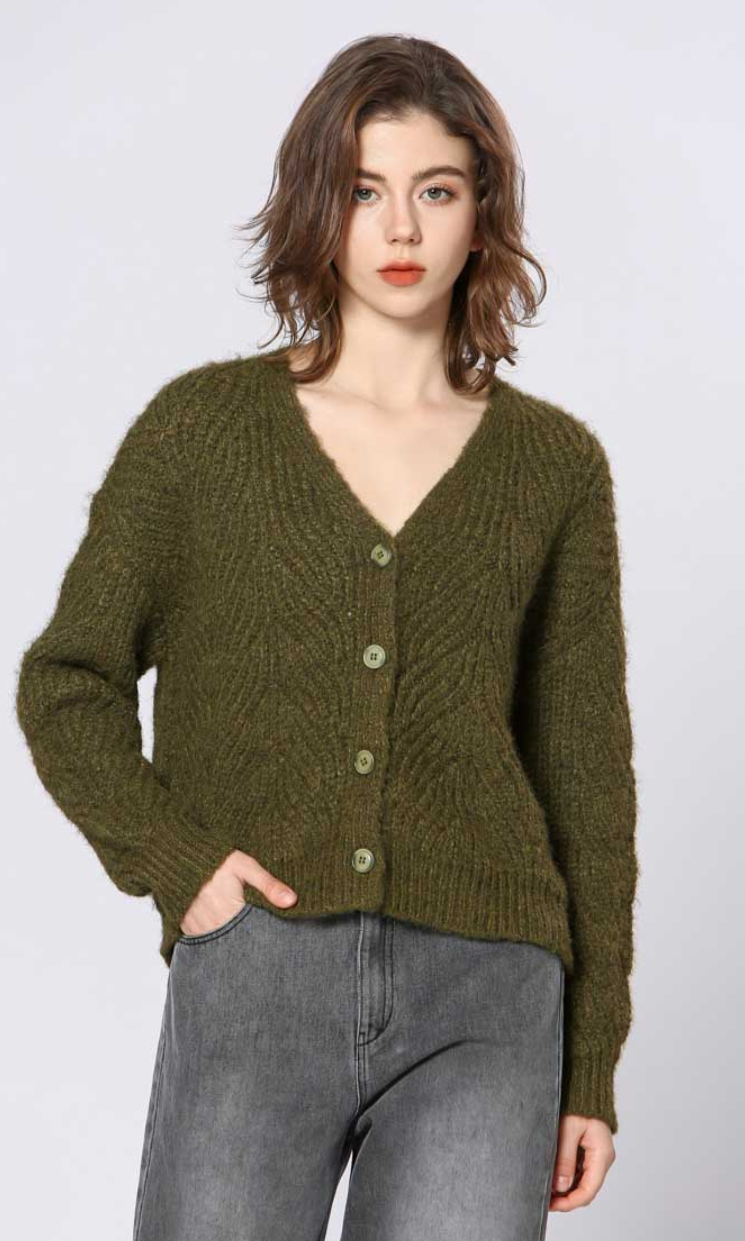 Why we picked it: Because the perfect cozy cardigan is a non-negotiable — and this one delivers on every level. This soft, textured cardigan is what comfort meets style looks like. That beautiful olive green shade is rich, earthy, and so much more interesting than basic black or grey - but as we know, it's still a neutral and will go with so much you already have in your closet! The length hits at just the right spot to flatter your waistline, while the relaxed V-neck and oversized fit keep everything feeling wonderfully laid-back. The soft, fuzzy texture adds visual interest and that extra cozy factor we all crave in fall and winter.