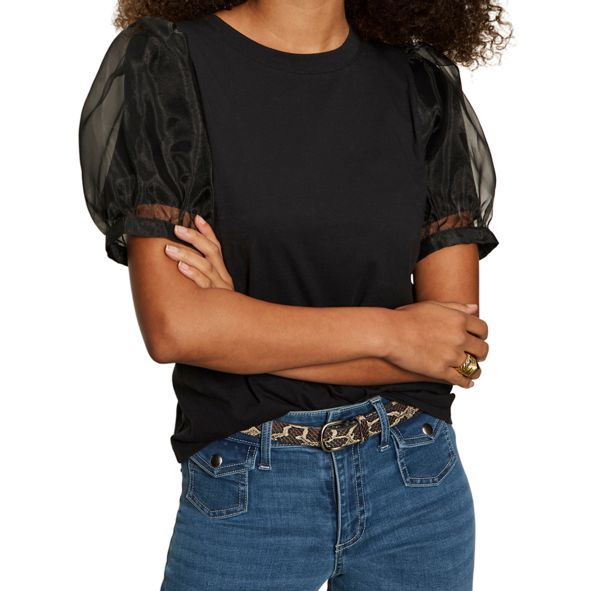 Why we picked it: We love a basic that doesn't feel boring, and The Feel Good Tee delivers on that! This isn't your average t-shirt — those gorgeous organza puff sleeves turn a casual staple into something special, while the soft jersey body keeps it comfortable enough for all-day wear. The clean black color makes it endlessly versatile, and that crew neckline hits just right for easy styling. It's the kind of top that makes you feel put-together even when you're keeping things super simple, because those statement sleeves do all the work for you.